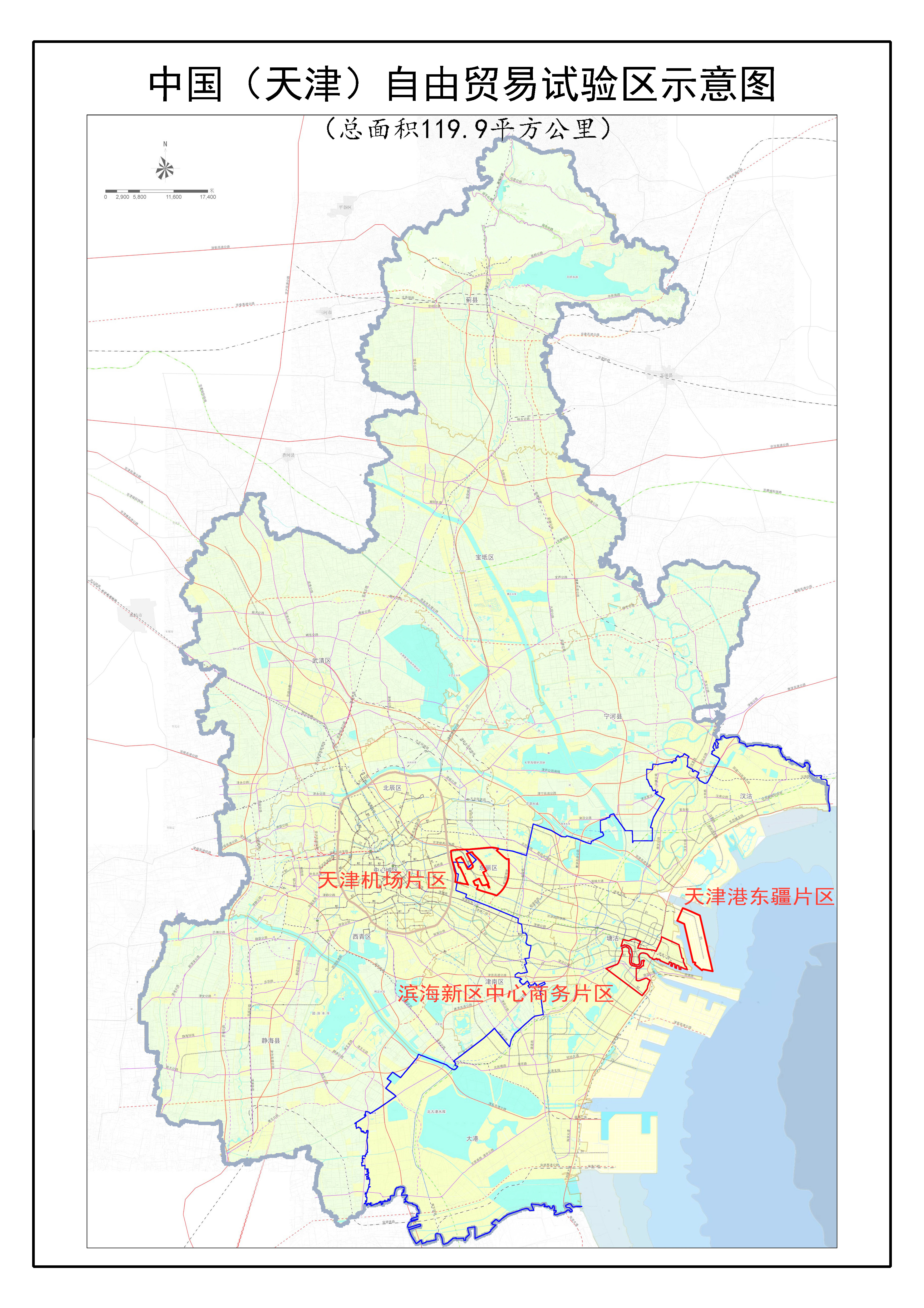 按照國務(wù)院批復(fù),中國(天津)自由貿(mào)易試驗(yàn)區(qū)規(guī)劃面積119.9平方公里(包括16.96平方公里的海關(guān)特殊監(jiān)管區(qū)),約占天...
