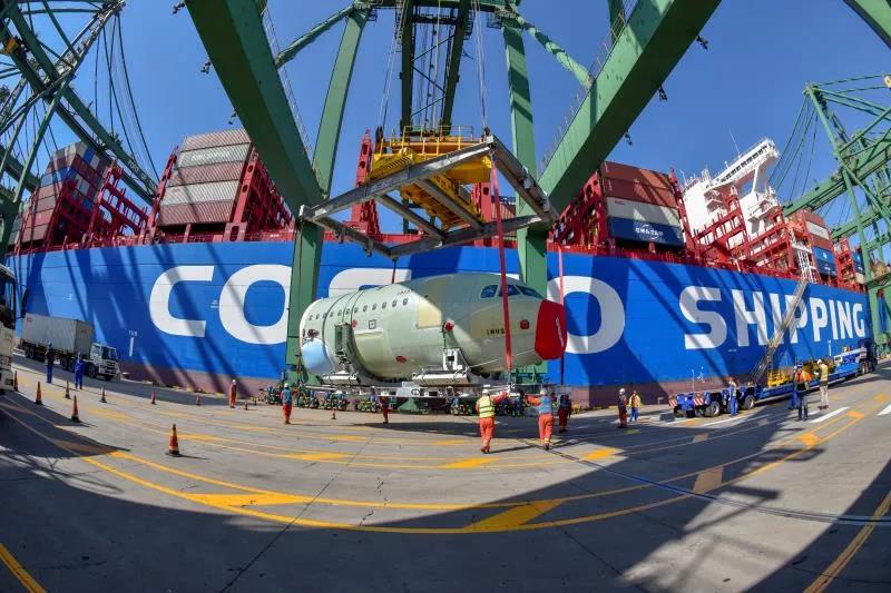 這艘貨輪從德國(guó)漢堡而來,船上搭載著空客(airbus)飛機(jī)的大部件,不到一小時(shí)就完成吊裝。幾小時(shí)后,飛機(jī)大部件就迅速送到位于天津自貿(mào)區(qū)機(jī)場(chǎng)片區(qū)內(nèi)的空客亞洲總裝線,保障了津產(chǎn)空客A320和A330系列機(jī)型的順利交付。