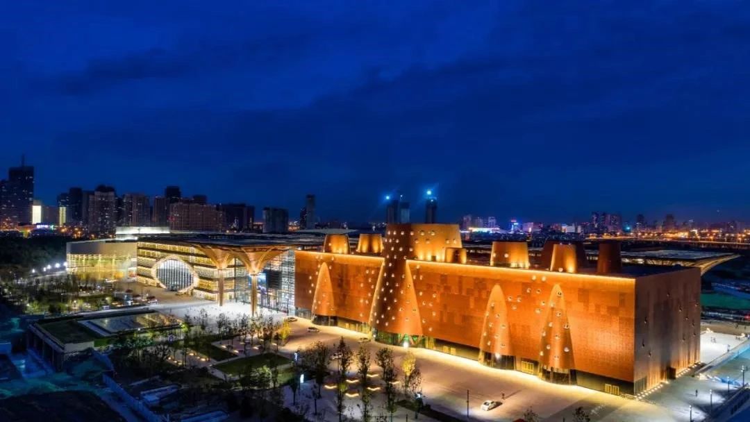 整個(gè)“大鐵鍋”建筑面積達(dá)2.6萬(wàn)平方千米,布展面積1.7萬(wàn)平方千米,建筑風(fēng)格給人一種工業(yè)氣息濃厚的感覺(jué),也恰巧對(duì)應(yīng)了天津?yàn)I海地區(qū)的工業(yè)歷史。