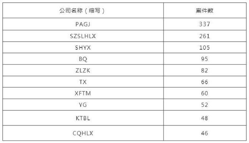 本月融資租賃全行業案件數前十的企業名單