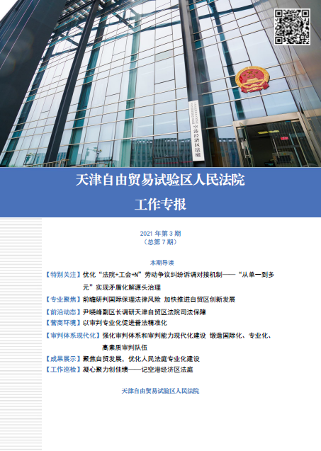 近日,《天津自由貿易試驗區法院工作專報》2021年第3期發布,以審判模式創新、產業需求導向、營商環境優化、首創成果加速為著力點,推動天津自貿區更高水平、更大力度、更深層次開發開放。