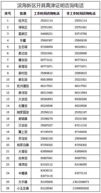 事關(guān)“離津證明”,濱海新區(qū)公布咨詢電話