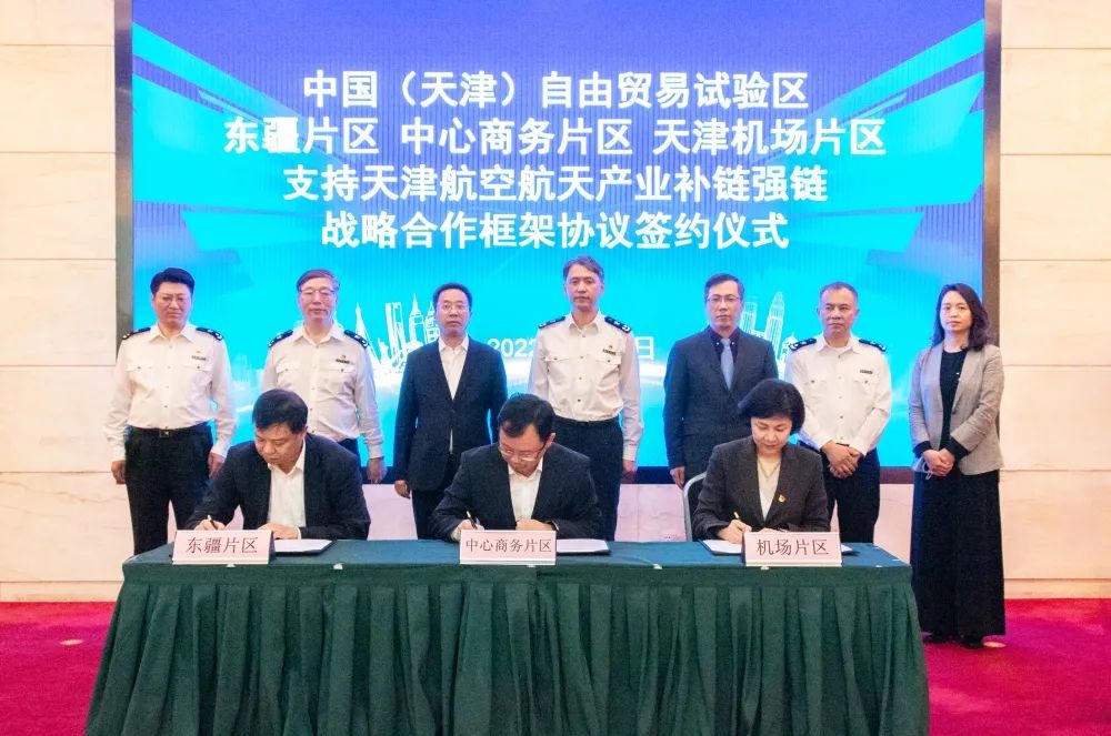 近日,《中國(天津)自由貿易試驗區東疆片區、中心商務片區、天津機場片區支持天津航空航天產業補鏈強鏈戰略合作框架協議》簽約儀式在天津港保稅區隆重舉行。這是全國首個自貿試驗區片區間圍繞特定產業鏈形成的合作范例。市商務局、天津海關和自貿區管委會見證簽約。