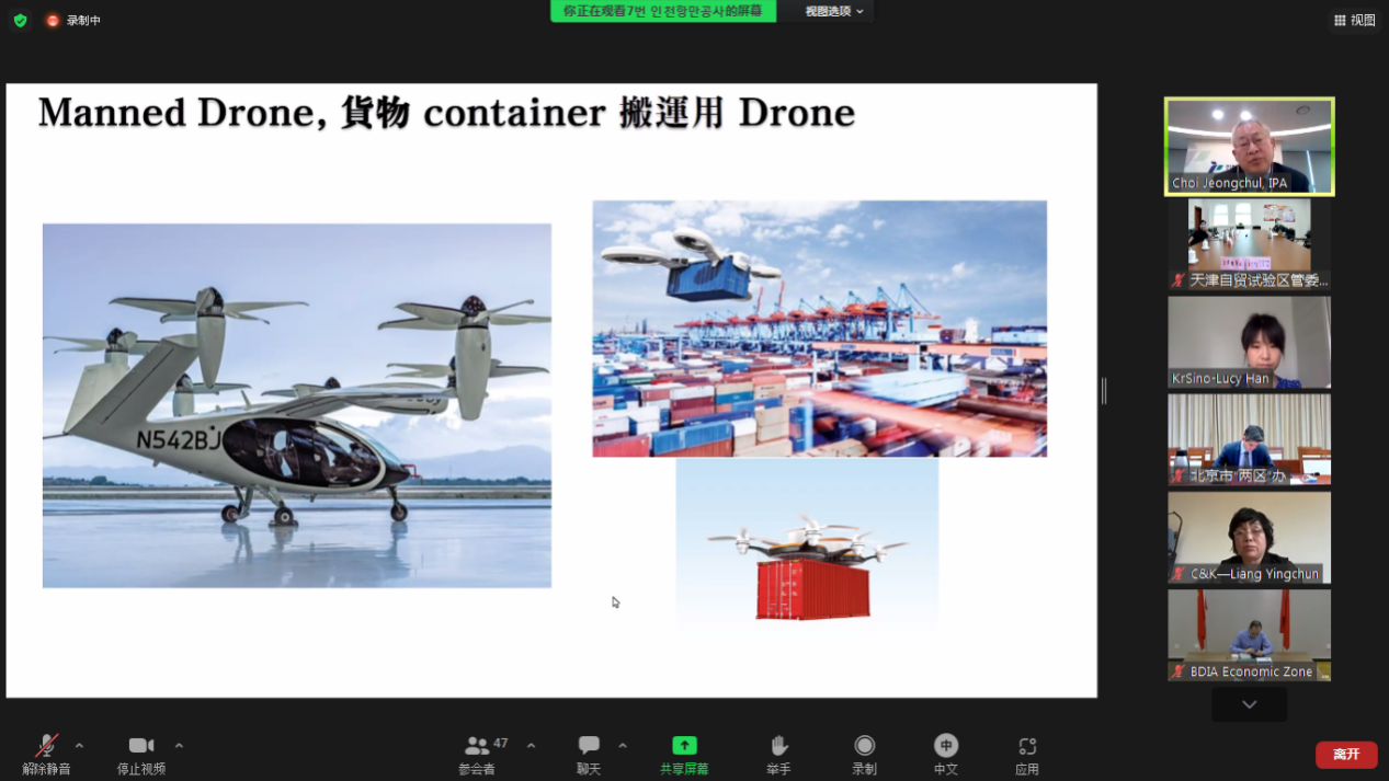 天津自貿(mào)試驗(yàn)區(qū)東疆片區(qū)自貿(mào)工作局劉慶良局長(zhǎng)線上推介了東疆片區(qū)的歷史沿革、區(qū)域經(jīng)濟(jì)、優(yōu)勢(shì)產(chǎn)業(yè)、智慧港口、中歐班列、營(yíng)商環(huán)境建設(shè)等相關(guān)情況,就韓國(guó)企業(yè)代表關(guān)注的融資租賃、國(guó)際貿(mào)易、海鐵聯(lián)運(yùn)等產(chǎn)業(yè)領(lǐng)域和項(xiàng)目進(jìn)行重點(diǎn)介紹,并誠(chéng)邀韓國(guó)企業(yè)來(lái)津發(fā)展。