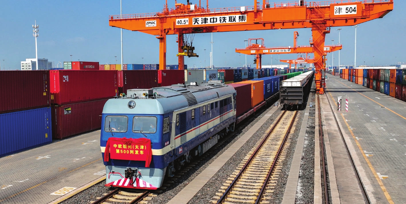 昨天上午,隨著一陣汽笛長鳴,一列滿載機械設備、食品等物品的中歐班列,從中國鐵路北京局集團有限公司天津集裝箱中心站緩緩駛離,前往蒙古國。這標志著今年以來天津口岸發運的中歐班列突破500列,運送集裝箱總量超50000標準箱,同比增幅均超過79%,增幅居全國前列,創天津口岸歷史新高。