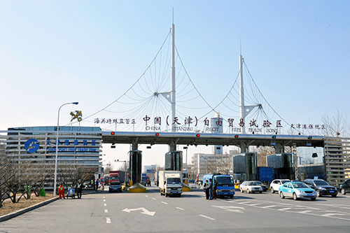 2月9日天津自貿區濱海新區中心商務片區保稅區北卡口換上了“中國(天津)自由貿易試驗區”標識,這也是本市3片自貿試驗區最先安裝標識的通道。近期,空港中心大道、東疆新港八號路等也將安裝該標識。