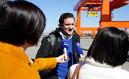 “多長時間一趟班列?”“主要運載什么貨物?”在東疆海鐵換裝中心,荷蘭金融時報記者鄧達斯詳細詢問了中歐班列的相關情況,他介紹說,荷蘭是“一帶一路”的終點,自己之前就很關注相關信息,這對荷蘭來說也是一次重要的合作機會。