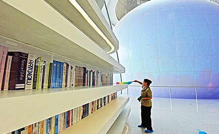 在濱海圖書館,你不僅可以領略古人向往的書山的壯麗,亦可通過巨大的“眼睛”一窺書中的奧秘。高科技的數字閱讀技術、走在時尚前沿的跨界書店,滿足讀者關于這里的一切想象。日前,濱海圖書館已經開啟試運營,面向文化志愿者進行預約制體驗開放,具備條件后將陸續擴大體驗范圍并及時向市民和社會團體開放。據了解,正式開館后,館內圖書提供免押金借閱。