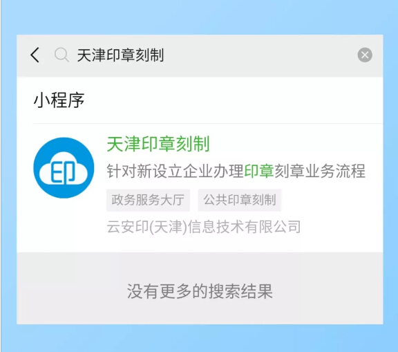 新開辦企業(yè)憑借法定代表人身份證號(或電子營業(yè)執(zhí)照出示標(biāo)識)和電話號碼,通過“天津印章刻制”微信小程序,即可在線選擇公章制作單位和需要刻制的公章,無需提交其他備案材料。