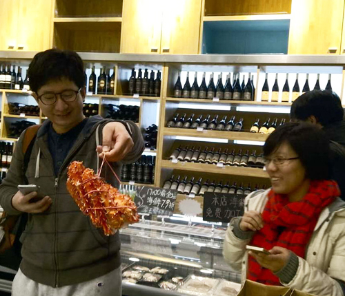 河東店占地面積約400平方米,設有商品展銷區、洽談區、加工區和品鑒區。該直營中心主要銷售從東疆及天津口岸通關的來自多個國家的2000多種進口商品,其中包括:酒水、飲料、冰鮮肉類、海鮮、母嬰用品、糧油副食、乳制品、預包裝食品、日化用品等。該直營中心運營方——中南天津貿易有限公司總經理唐行遠表示,該店特色主打海鮮,進口自挪威、智利、日本、美國、英國等多個國家,包含波士頓龍蝦、挪威鱈魚、英國帝王蟹等20多種特色海鮮,所有進口海鮮都可以在店里進行現場加工,一只三斤的帝王蟹售價298元,包含現場加工費用。直營中心由東疆保稅港區正式授牌并聯合各單位進行監督管理,所售商品都是完稅商品,但通過減少流通環節,商品價格比市場同類商品價格低20%~50%。