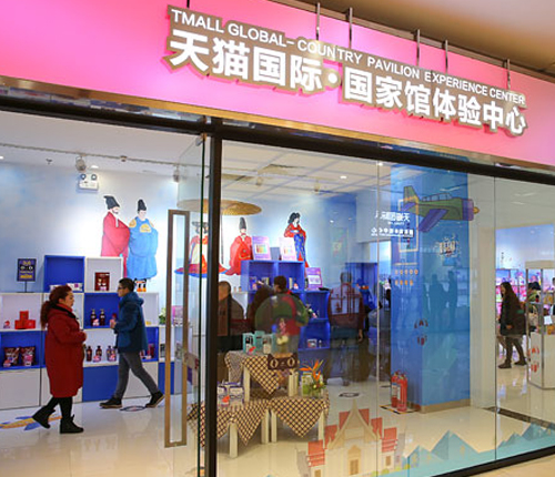 在天貓國際體驗中心,以往阿里巴巴天貓線上的商品擺放在店面中進行展示,消費者先體驗該商品,再通過掃描二維碼進行下單購物。