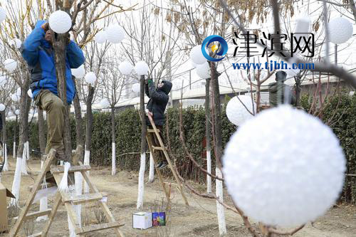 據了解,今年的春節節日氣氛布置工作以建設美麗濱海為主要思路,按照喜慶、祥和、大氣、洋氣及節儉的原則,以“國旗、中國結、樹掛串燈、實景造型”等為主題元素,對重點地區、主要道路、水系、建筑物進行設計裝點,營造“安定祥和、歡樂文明、優美靚麗、普天同慶”的濃厚節日氣氛。(記者 陳西艷 攝影 賈成龍 賈磊)