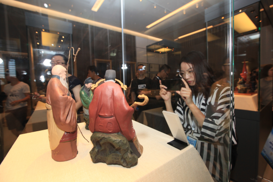 記者看到,赫赫有名的“泥人張”出現在了美術館中。“泥人張”的彩塑,把傳統的捏泥人提高到圓塑藝術的水平,又裝飾以色彩、道具,形成了獨特的風格,其作品藝術精美,影響遠及世界各地,在我國傳統民間手工藝史上占有重要的地位。