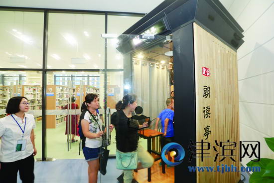 記者昨日在濱海新區圖書館南區三層看到,兩臺于日前投用的朗讀亭已成為圖書館內的“新網紅”,前來嘗試的讀者絡繹不絕。記者注意到,朗讀亭門口張貼了一張使用說明,讀者掃描說明中的圖書館二維碼,在下方對話框“信息”欄可獲取開門密碼;進入朗讀亭后關注屏幕上顯示的微信公眾號,即可選擇錄制素材、背景音樂進入朗讀階段,朗讀的作品還會通過關注的公眾號發送到讀者的手機上。