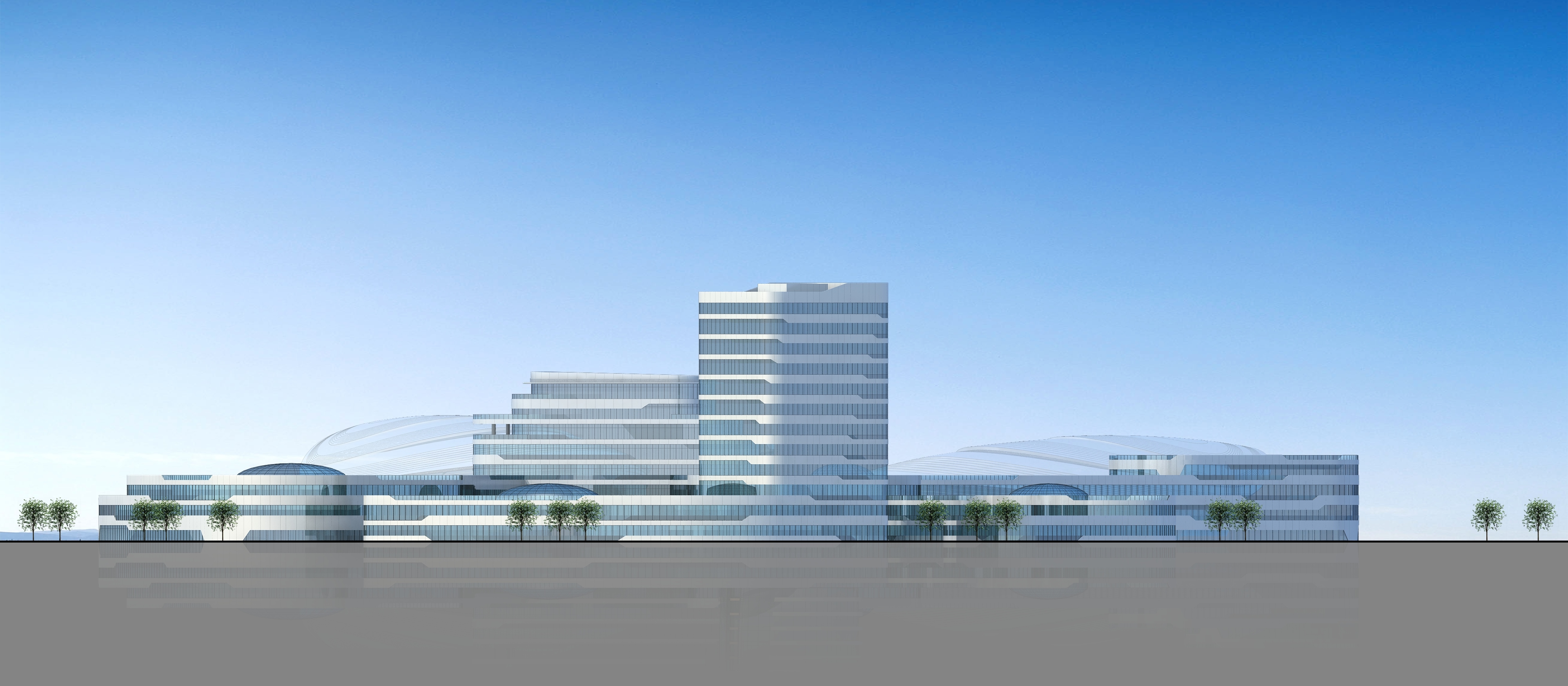 Architectural modeling design combined with the industrial nature of Auto expo center,simple modern style,The free horizontal lines outline the three-dimensional and rhythmic feeling of the building ,and combine the building with the roof garden through the treatment of the terrace。