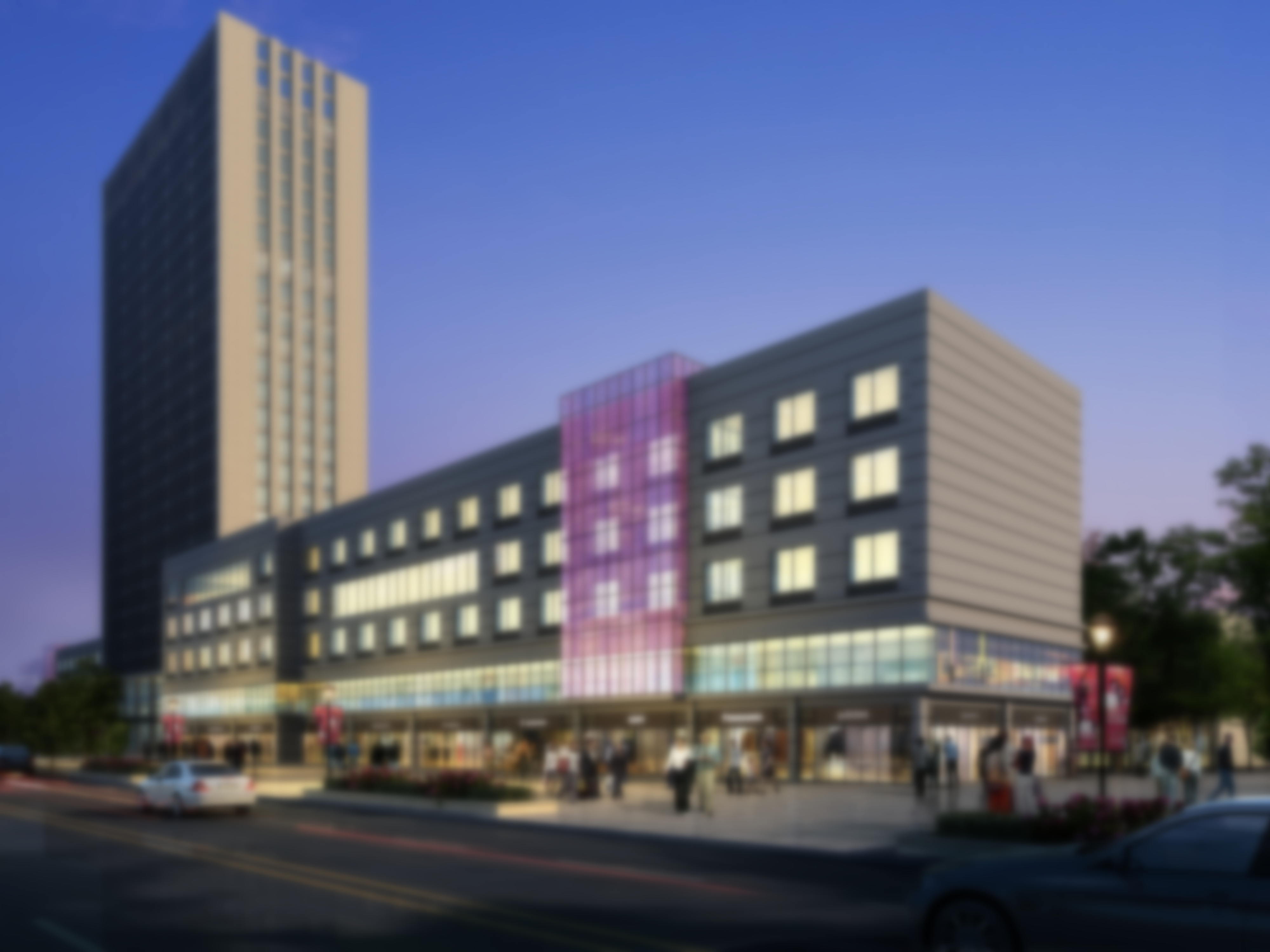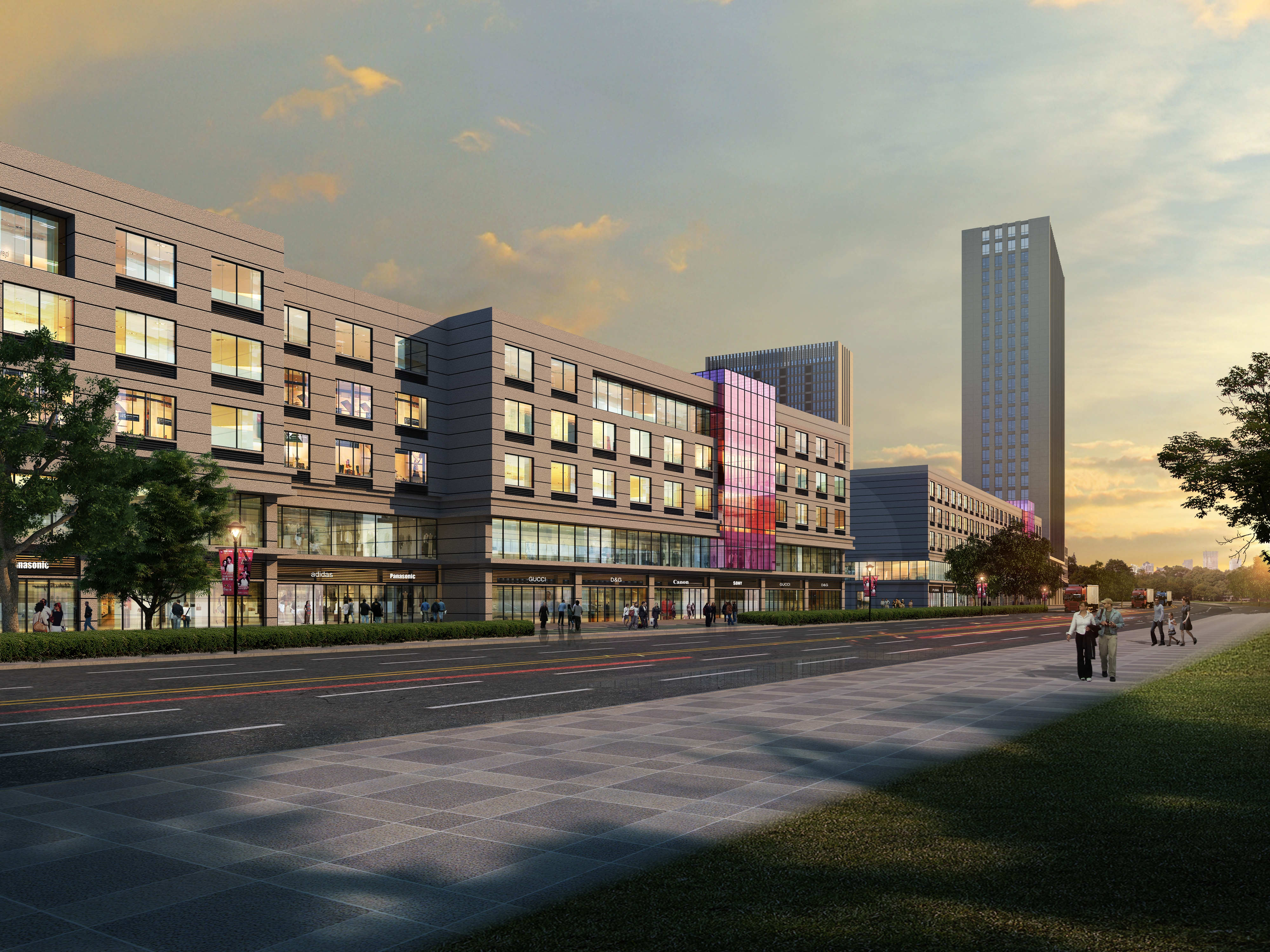 The facade design of the building continues to follow the modern style,but the targeted design of upgrading is carried out。The market part obtains a simple and beautiful shape through the way of coffee-colored aluminum-plastic plate floor glass and overhead。Frontage business and trading market will be unified design of the whole area through modern treatment methods such as grating back platform, metal perforated plate,night view lighting design。