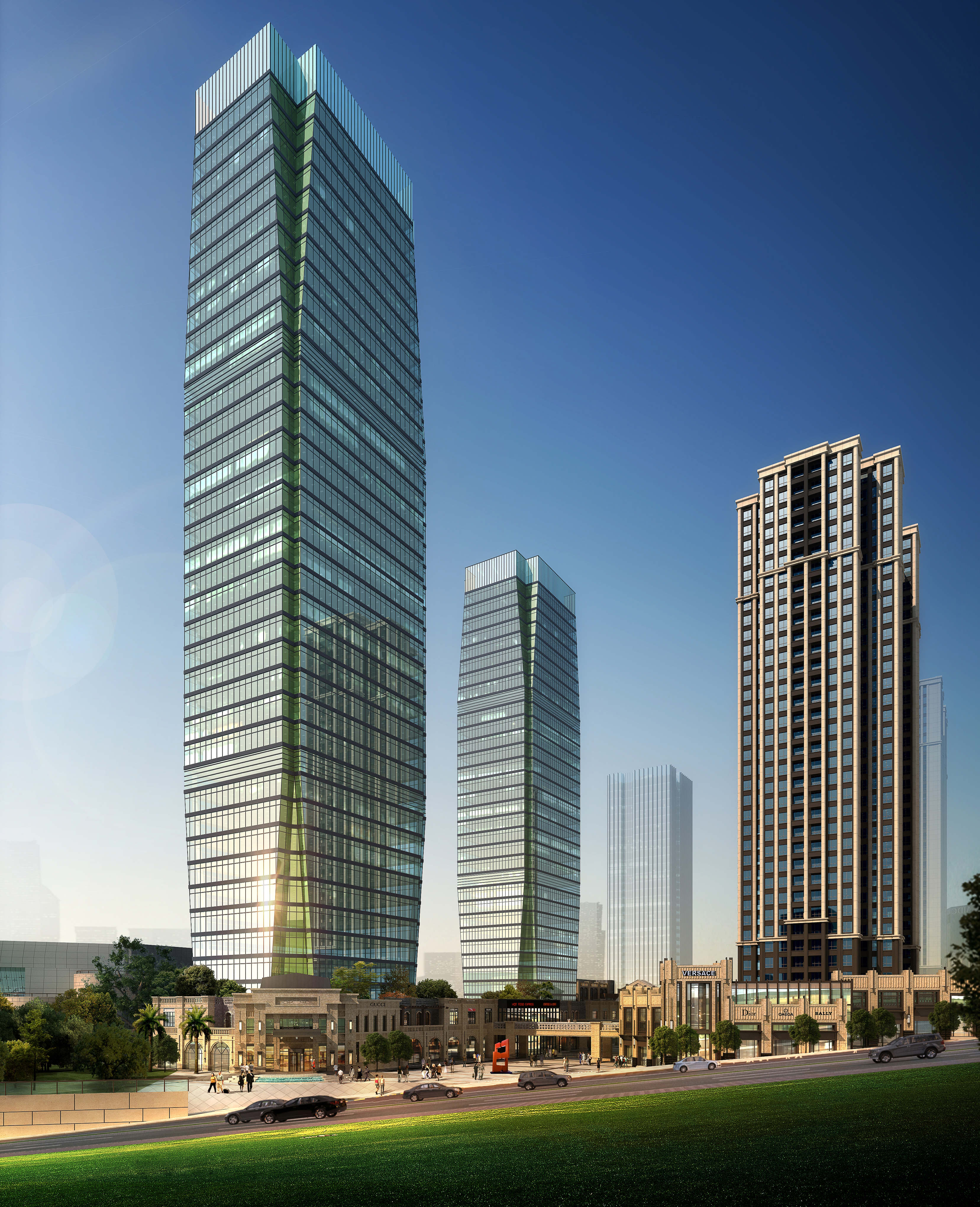 The project includes the college area of the kindergarten and primary school teaching building apartment,adjacent to the college area is a residential building consisting of two towers,supporting a commercial and underground garage。