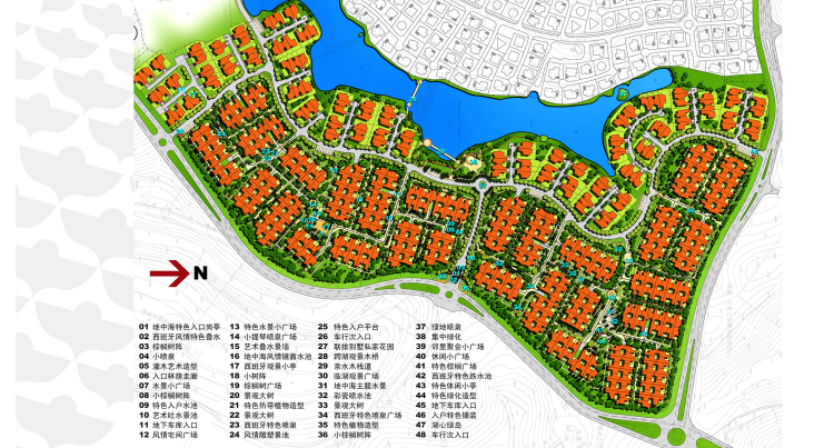 The location of meilin lake is in the Huadu district, Guanzhou city. The design combines the mountain and water resource effectively to form a high-quality and international community with various landscape. The style of architecture is Mediterranean and European. It is simple and elegant, with exotic atmosphere.