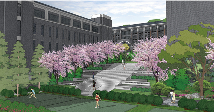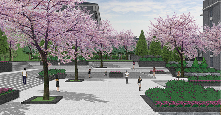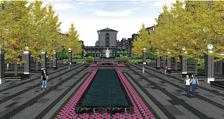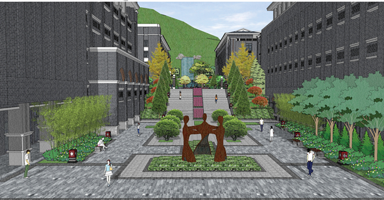Two axis:The overall landscape axis is divided into campus historical axis and human landscape axis.The theme of the former is campus history and culture. The theme of the latter is to show the spirit of teachers and students.