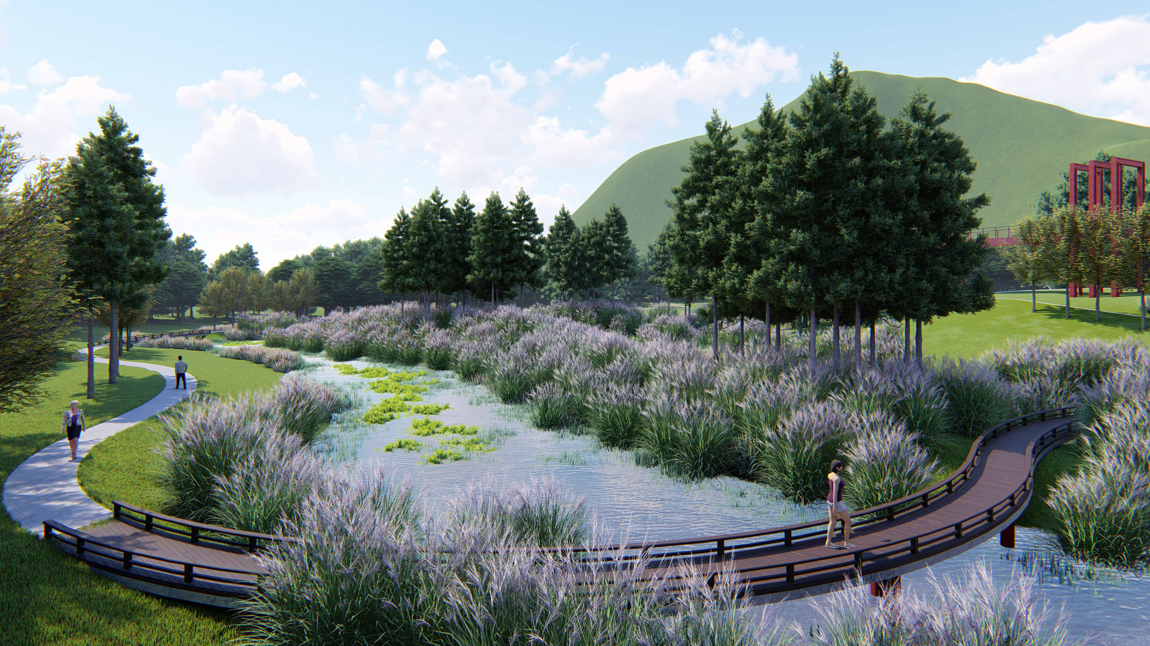 With traditional gardening techniques as the link,it connects the expression of traditional Chinese gardens and modern landscape design concepts,making the dialogue between industry and ecology,the embrace of urban jungle and green plants,and a new garden-style park in a modern city。
