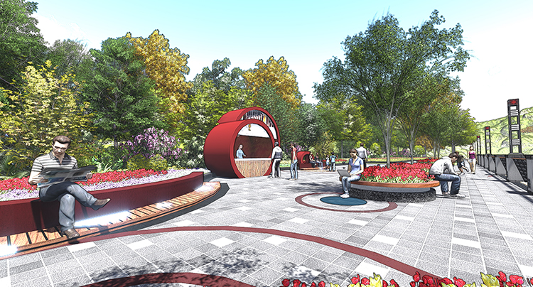 Based on the modern material, streamline and abundant color, uniting the modern design approach and traditional elements, we hope to create a landscape with regional characteristic and culture.