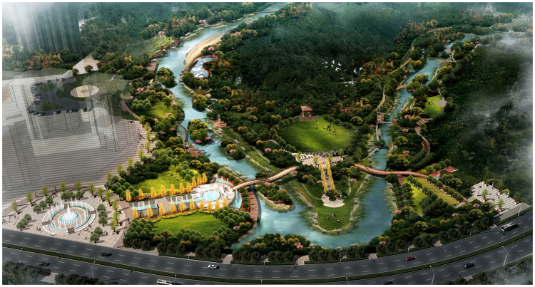 Yuzixi park is located in Luzhou Yangtze River(neat the Zhangba Guiyuan Lin scenic area). It is 20 minutes far away the central region of Luzhou. The project shows the general imagination of new district to other people. And it provides the function of entertainment, leisure, fitness and so on. The design coordinates the relationship between the surrounding area and the site. It combines well with the adjacent site to make best use of the land. The purpose of the design is to establish a mountain park in the city, and build a good interacted relationship between the park and the city, to attract people to come to the park to do some outdoor activities and achieve the harmony between human and nature.