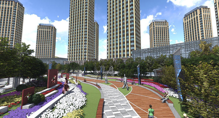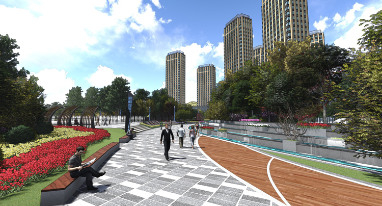 The project uses terrain for layout a heart-shaped curve path that runs through the whole land, along the road which runs through north to south, we set the third park, which is linked to the entire site, and there were two planning mountain parks in the land, ultimately formed the concept of “three parks”, that realize the design concept of mutual integration between human and parks truly. While, the third park will also be linked with business area, due to the presence of the park which has a good role in making popular gathering, that will making a very good atmosphere of business.