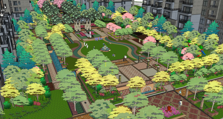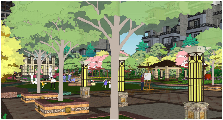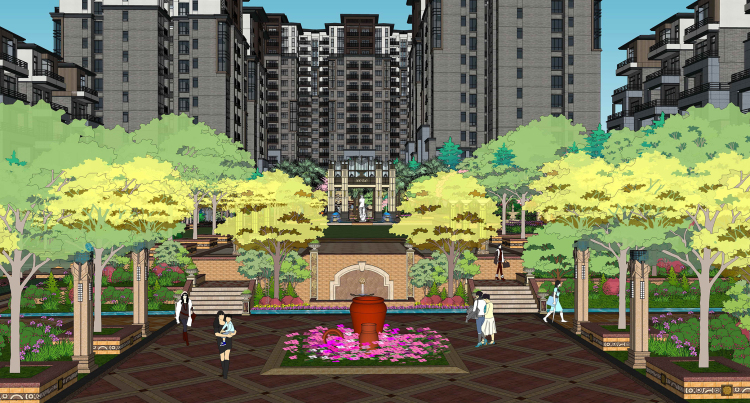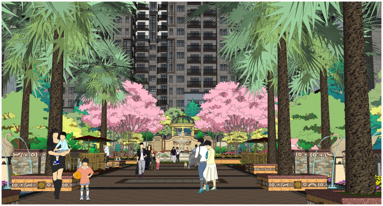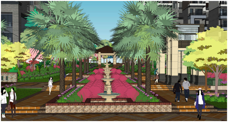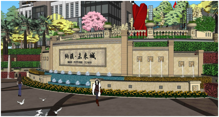 Future Town residential community locates in the Naxi District, Luzhou City. The elevation of the site changes much. We makes the two landscape axis by the layout of the existing site situation and architecture type, and create the interesting open space through the central green space, gardens between and nearby the residential building. We make the main entrance dignified to improve landscape and living environment quality. The design is displayed by funny changed space, the regular plants landscape of both sides and the dynamic water landscape,thus form a neat but vivid landscape.