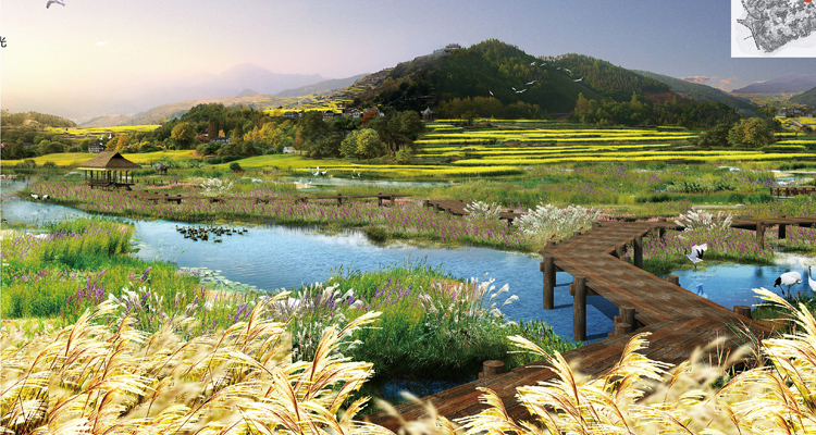 Respecting site status, using status resources reasonably, to create village pastoral landscape for agricultural mainly,construct many natural landscape with wetland, river,cultural park and so on;