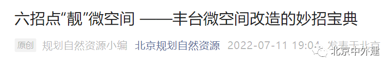 【官微報道】我司豐臺微空間改造項目得到北京規(guī)劃自然資源微信官方賬號報道